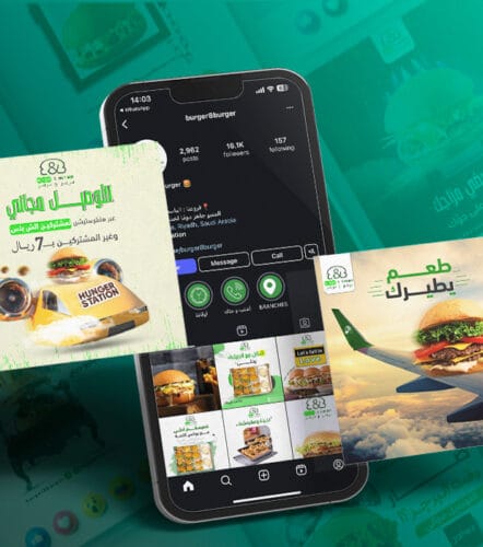 تصميم منشورات برجر بجودة عالية، ألوان دافئة وأيقونات طعام. صُمِّم بأدوبي فوتوشوب (الطبقات/التأثيرات) لتعزيز التفاعل والهوية البصرية.