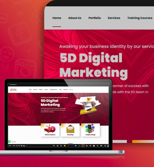 WordPressتطوير المواقع الالكترونيةموقع 5D للتسويق الرقمي: صُمِّم بووردبريس مع Elementor Pro، Polylang، WPForms وChaty.